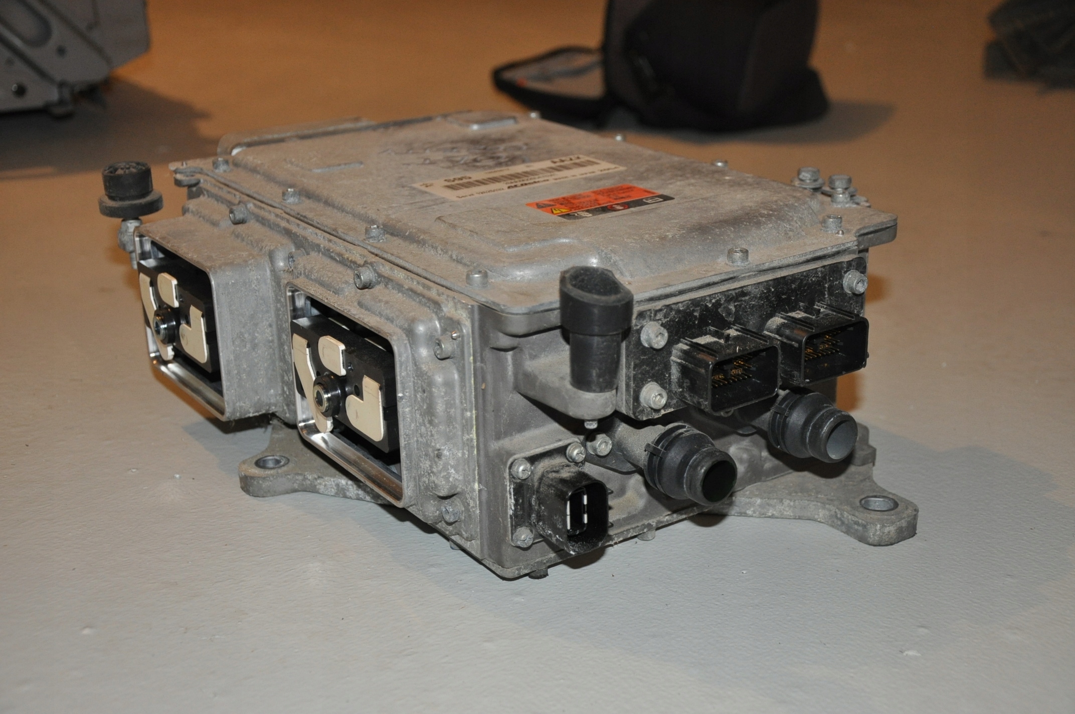В корпусе электродвигателя / генератора, который выглядит как коробка передач автомобиля с газовым двигателем, находится инверторный модуль с жидкостным охлаждением, который питается от батареи и питает тяговый двигатель. Оранжевые высоковольтные кабели, ведущие к этому модулю, имеют разъединители с реле для безопасности - и Штайер отмечает, что сама крышка модуля также является разъединением цепи безопасности. Внутри находится то, что, по словам Скотта-Томаса, ближе всего к «центральному мозгу» в машине.